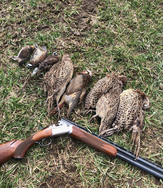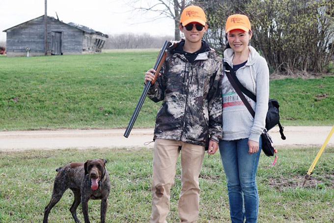 戴新是枪友会“娘子军军长”,但她的儿子很少和她去靶场练枪,儿子的枪法极准,戴新认为这是天赋。戴新的两个儿子,绝对是见过世面的,去年寒假他们曾跟随爸爸去南非打猎,打的非洲大羚羊。这次来伊州南部的小镇打鸟禽,对Brandon而言可谓小儿科。当天Brandon共收获3只野鸡,2只鹧鸪,7只鹌鹑。此外,还有猎狗自己发现并咬回来的野鸡、鹧鸪。