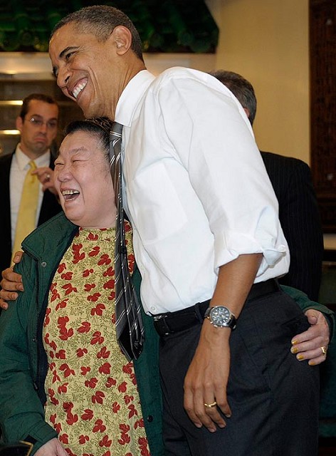旧金山买虾饺 奥巴马竟招两个大妈“袭臀”(组图) 苹果日报
