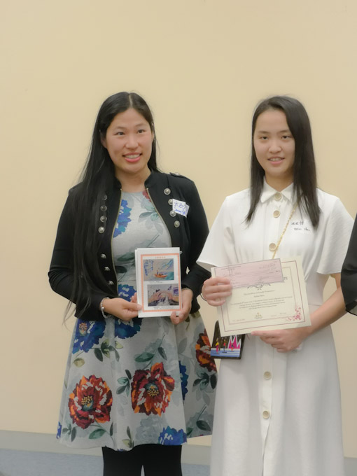 第一名的绘画作品来自于希林西北中文学校的8岁女孩窦菲(左)