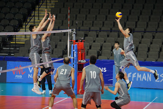 这次世界排球联赛落户美国芝加哥,共有16支队伍参加,包括核心球队:阿根廷、巴西、中国、法国、德国、伊朗、意大利、日本、波兰、俄罗斯、塞尔维亚、美国,以及挑战球队:澳大利亚、保加利亚、加拿大、葡萄牙。中国队在抵达芝加哥的第二天就调整状态开始训练,从体能训练到实战训练,整整两个小时,看到的是队员每个人的精神状态都很饱满,为了这次比赛,队员们一定做好了充分的准备。看到外教劳尔一直在场地上和队员讲解和纠正,看到队员们奋力的拼搏和挥洒的汗水,作为海外华人的我,眼里泛着泪水。