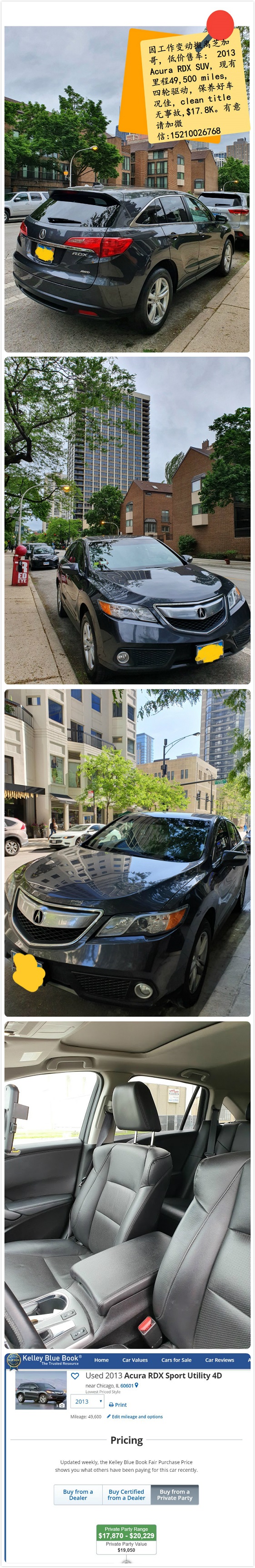 因工作变动搬离芝加哥,低价售车:2013Acura RDX SUV, 现有