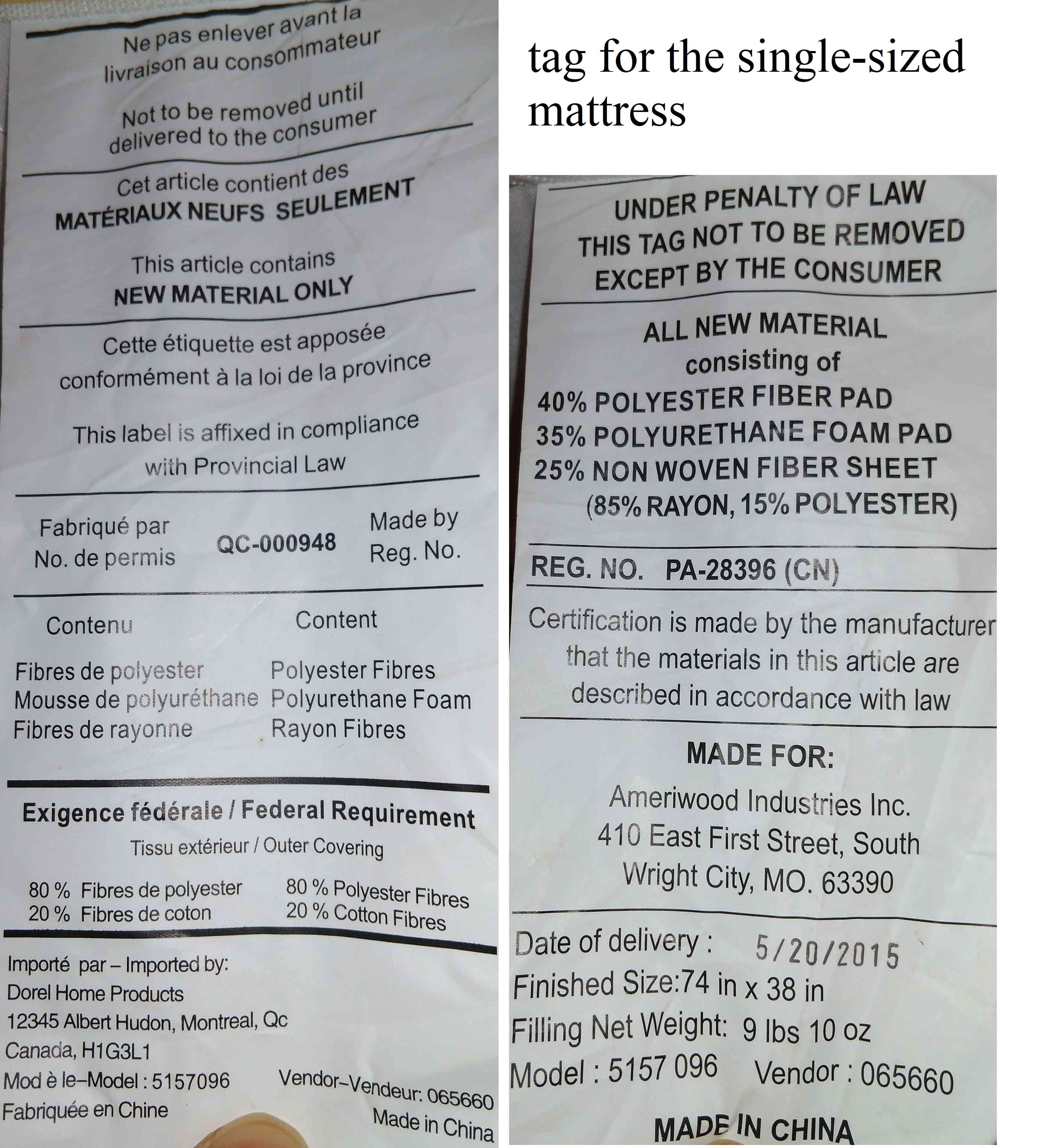 » 出售 single size 床垫 一个 $15