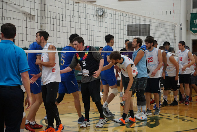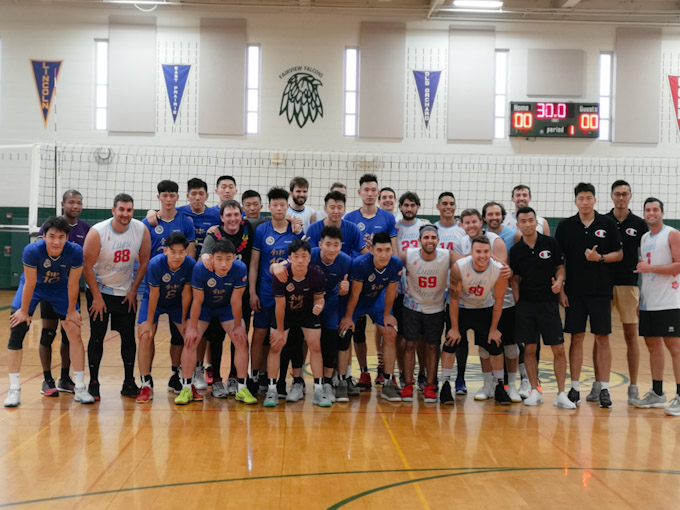 中国上海男排与芝加哥大学生联盟队luall of Chicago volleyball team赛后合影