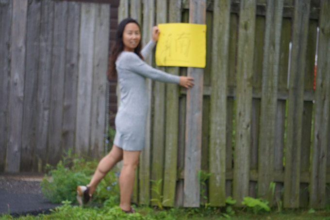 湖南同乡会理事高健冒雨贴标幅为大家指路