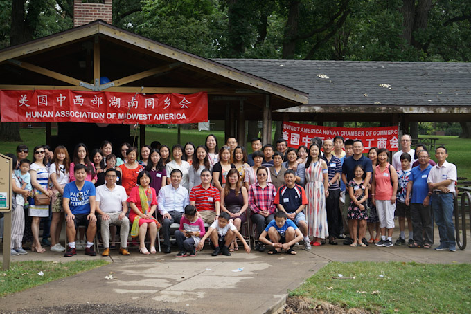 【芝加哥侨学网记者 王一 报道】美国中西部地区湖南同乡会暨工商会,8月17日在芝加哥西郊的katherine Legge Memorial Park ( Burr Ridge )举办一年一度的夏季野餐联谊活动,美景美食和浓浓乡情吸引了大芝加哥地区的近100位湖南老乡与各界嘉宾的欢聚到来。当天倾盆大雨,湖南老乡和嘉宾不惧大雨,冒雨赶来。天公作美,当野餐开始时,天气也好转!湘菜飘香四溢,今年更是多了一到亮点——长沙小龙虾。湘音浓郁,老乡们在共享夏日美好生活时光的同时,更加强和促进了沟通与联系。