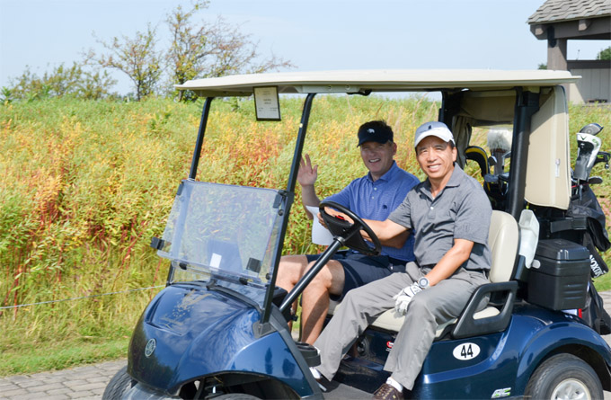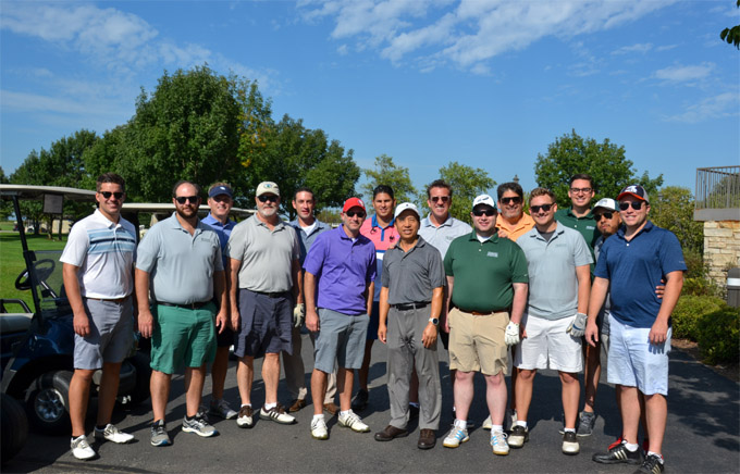 在秋高气爽的日子里,新泰门窗公司总裁兼创办人雷正明(Jimmy Lei)与十多家大芝加哥地区建筑商、地产开发商的高管欢聚在芝加哥西南郊的保龄布鲁克高尔夫俱乐部(Bolingbrook Golf Club)。应邀前来的合作伙伴,包括美国建筑业百年老字号企业沃西建筑(Walsh Constrution)、UL标准检测公司、 Mcshane Constrution建筑公司、 Focus Real Estate Development房地产开发公司等企业的近20名高管。美国Cardinal Glass公司,德国Renolit公司、加拿大Ferco五金公司等新泰门窗的长期供货商,Stern Group, TBP Converting等企业为本次高尔夫赛提供赞助。