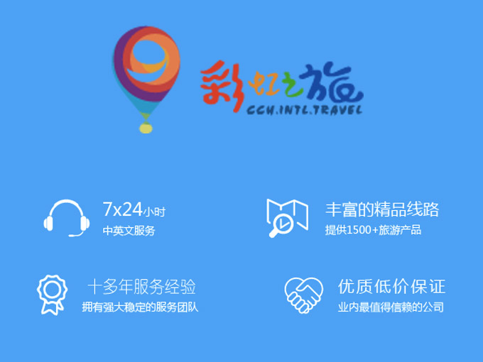 彩虹之旅国际旅行社 地址:3901 Main St., Ste 406 Flushing NY 11354网址:www.cchtrip.com邮件:cchtravelsusan@hotmail.com电话:877-218-5668(北美) 400-000-8218(中国) 7x24小时服务 微信客服ID:CCHTRIPSHA(机票+旅游)彩虹之旅(纽约分公司):3901 Main St., Ste 406 Flushing NY 11354彩虹之旅(中国上海分公司):上海黄浦区黄陂北路227号米域235房彩虹之旅(中国郑州分公司): 河南省郑州市紫荆山路60号金成国贸大厦 彩虹之旅(澳洲分公司): 5A/8 Station St, Moorabbin, VIC 3189 彩虹之旅(迪拜分公司): SR 1&2, Ground Floor, Gulf Towers Next to KM Trading, Oud Metha Road, Dubai