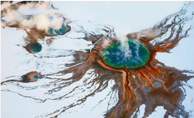 黄石的火山地质,创造出了雾凇,