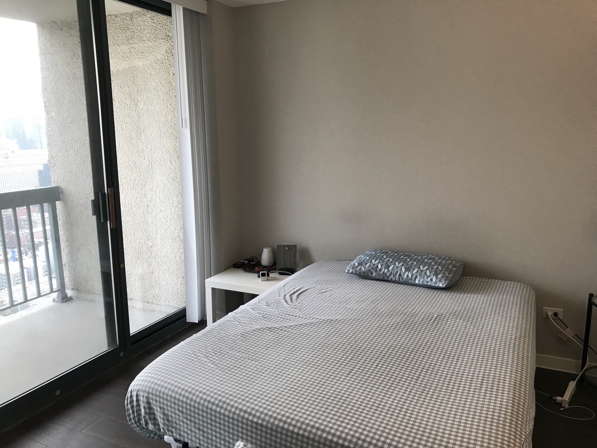 🔘672sqft,带阳台,房间朝南视野开阔。水电网,家具完备可直接入住。租期11月-1月底。$1800/月,价格可议