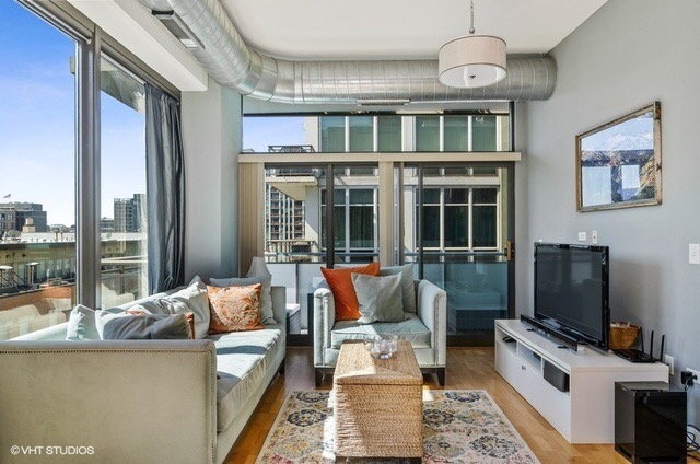 照片为原屋主卖房时的照片,目前客厅厨房家具已经齐全。 出租次卧,就是图 中书房的这间和full bathroom。房件采光绝佳view超好,走路到CTA绿线和粉线3分钟,楼下就是jewel osco还有星巴克,走路5分钟到google和Fulton market餐饮一条街。小区有配套健身房和club house。房租1450包含水电网络。
