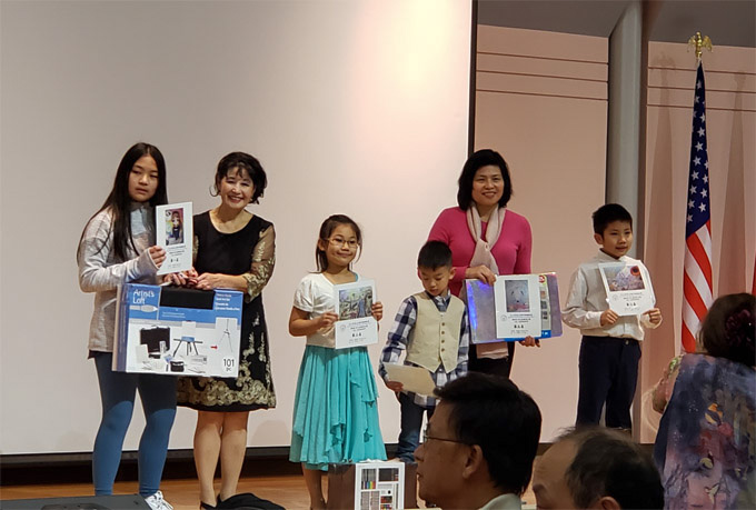 岁末年初,佳音频传。芝加哥培英美术学校的优秀学生在2019芝加哥台湾同乡联谊会儿童绘画比赛上包揽少年组前三名,并获得儿童组第一名等奖项。获奖小画家们在家长的陪同下,参加12月31日在芝加哥西郊华侨文教服务中心举办的台湾同乡联谊会辞旧迎新年会暨儿童绘画大赛颁奖典礼。