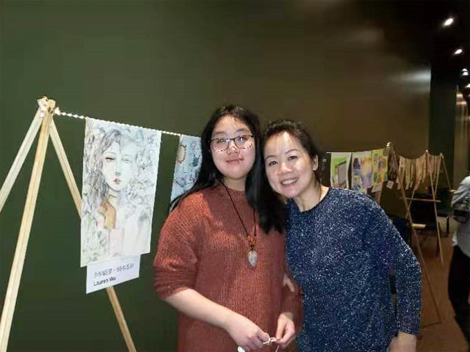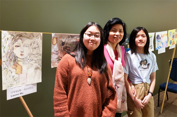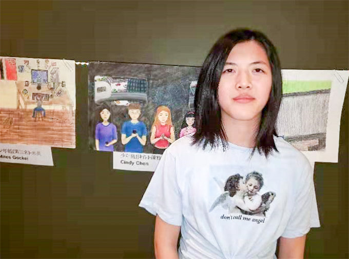 少年组获奖者Cindy Chen在画作前留影