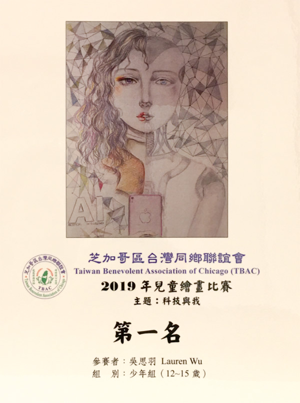 台湾同乡联谊会儿童绘画大赛,是一个全美范围内的艺术大赛,由美国各大城市的台湾同乡联谊会评选优秀作品,2019年度大事主题为“科技与我”。芝加哥台湾同乡联谊会主办的芝加哥地区比赛,幼儿组(5-7岁)比赛的题目是“我最喜欢做的事情”(my favorite thing),儿童组(8-11岁)和少年组(12-15岁)是“科技和我”(Technology and me)。