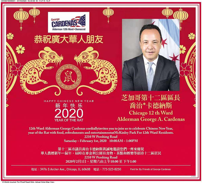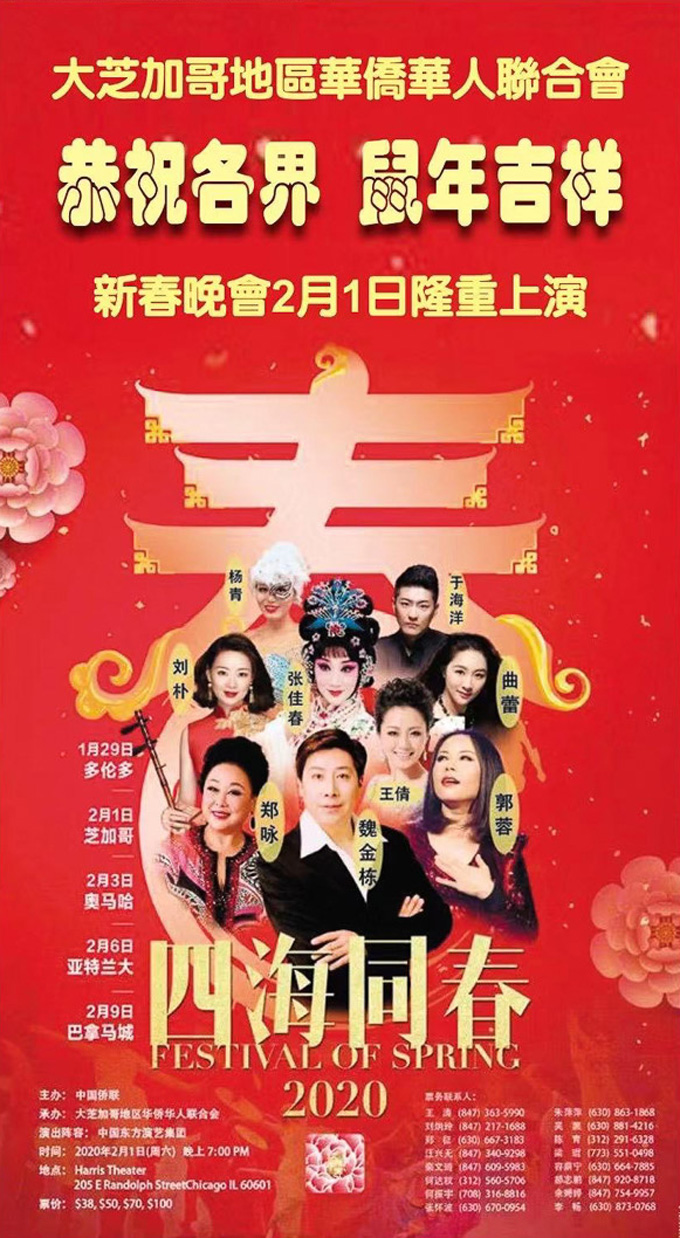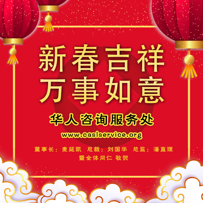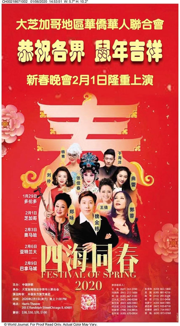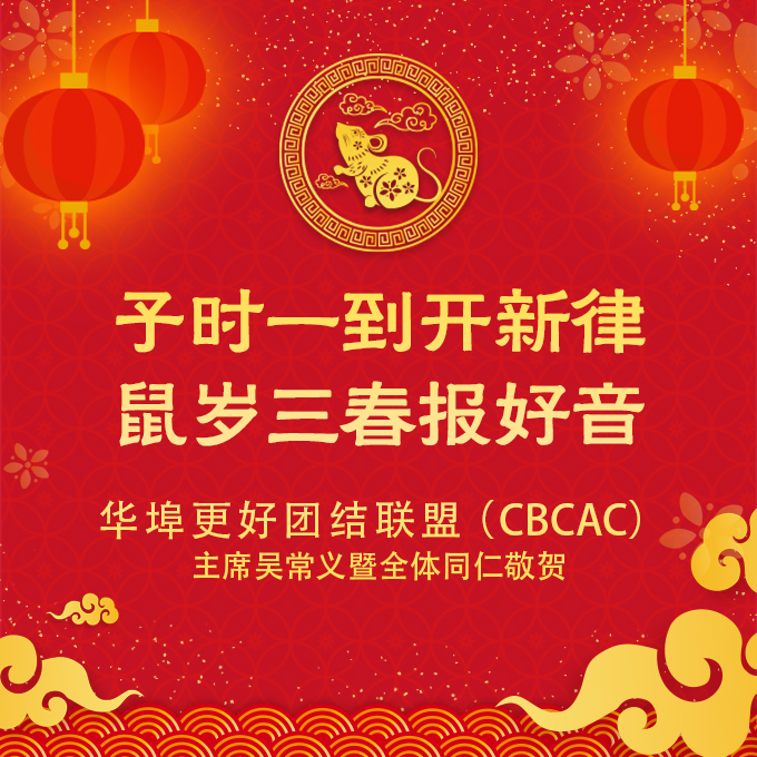 大芝加哥地区华侨华人联合会 郑征主席,汪兴无理事长及全体常务理事恭贺大家新年快乐,万事如意!