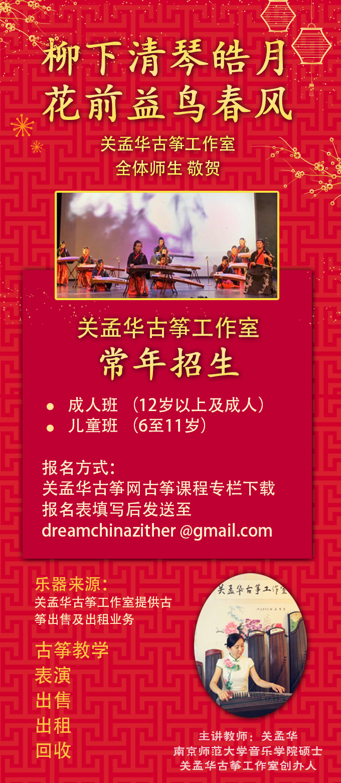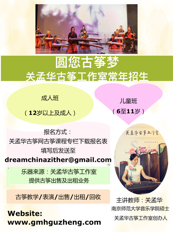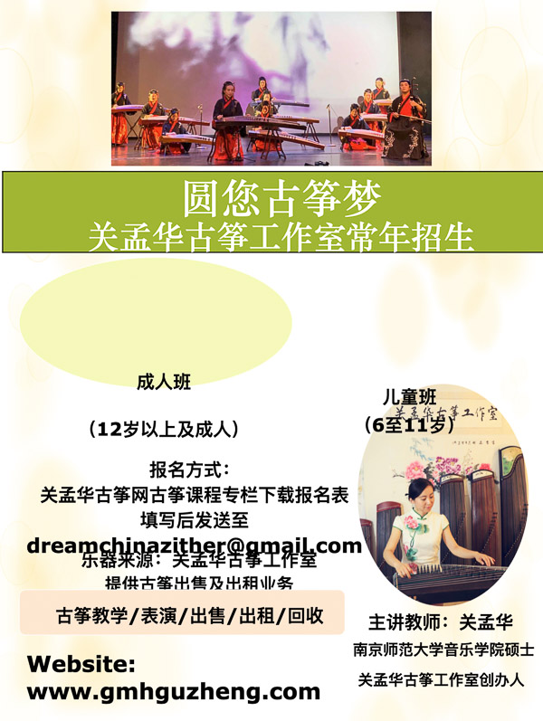 关孟华古筝工作室,由关孟华老师2017年创立于美国芝加哥。工作室积累了大量的教学经验和学习学员,并多次组织成员参与各类社会演出活动,获得好评。其中关孟华老师也多次得到各个大学邀请,进行各类音乐和古筝的讲座,具有一定的影响力。