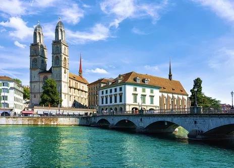 苏黎世大教堂(Grossmünster)教堂位于利马特河河岸附近,在宗教改革历史上扮演重要角色。罗马建筑风格,其双塔被视为苏黎世公认的地标。