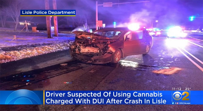 据CBS电视台报道,伊州大麻1月1日合法化以来芝加哥郊区出现了大麻毒驾车祸。1月20日晚7:20左右,发生在莱尔市(Lisle, IL),53号路与Main St 路口处附近。车祸发生时,20岁的惠顿市居民Cole Dixon驾车沿53号路南行,他驾车穿越道路中间的分割线,迎头撞上对面相向行驶的汽车。车祸受害者为54岁的男性,所幸双方都未受伤。