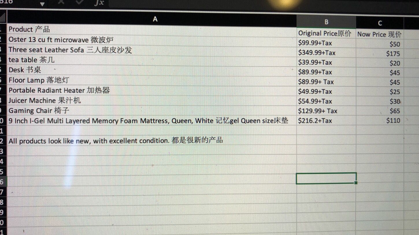 tea table 茶几 | $39.99+Tax | $20 |