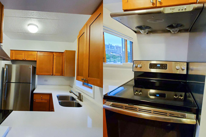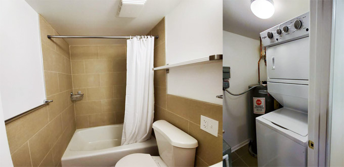 公寓配有炉头、冰箱、洗衣机、烘干机、网线,中央冷暖气,木地板。月租$1900。
