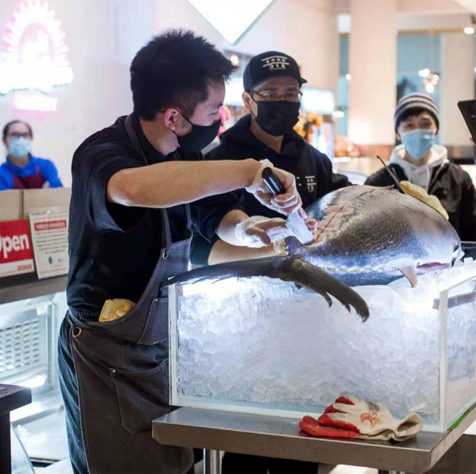 312 Fish Market 平均一个多星期进货一条百磅级蓝旗金枪鱼
