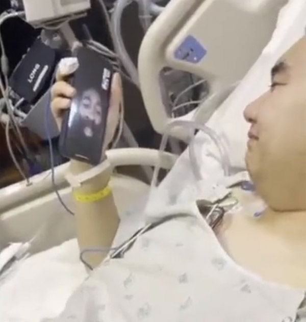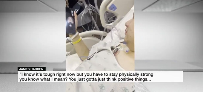 NBA篮球巨星詹姆斯哈登(James Harden)与受害者郝昱凯视频通话,勉励他积极振作【芝加哥侨学网报道】在密西根州立大学(MSU)枪击案受重伤的中国留学生郝昱凯(John Hao),当地医院最新诊断结果是“极有可能”终生瘫痪。