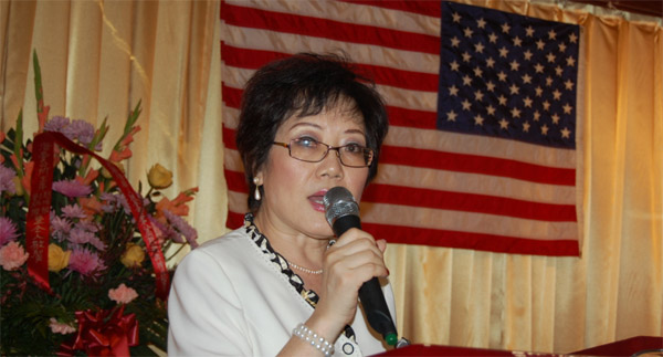 左起:胡晓军主席、汪妈妈、宋爱华领事