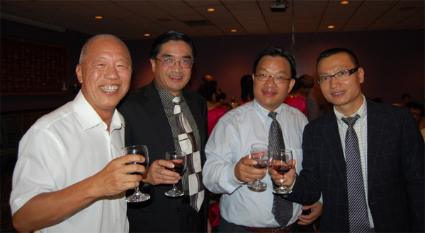 左起:华联会法律顾问、著名律师王志东、上海同乡会沈如霞女士、华联会主席胡晓军、华联会副主席赵健航