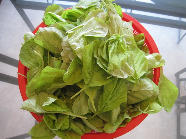那个红盆里的菜叶就是白米苋,苋菜,各地叫法不太一样,唐人街超市买的种子,要先撒小盆里待发芽后再移植到地里。长的很快。每天摘叶子,加点大蒜就能炒一盘,很鲜。这个菜不招虫,不用药,就淘米水浇浇,很简单。