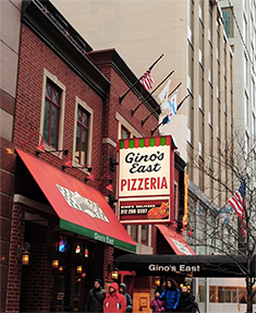 熟悉或者不熟悉芝加哥的吃货们都知道芝加哥美食三宝:深盘披萨、热狗、以及意大利牛肉。有机会来风城的朋友们千万不能错过,先评价它们是否好吃,但来到一个地方应该试试被大家称为美食的食物。Downtown 有一家号称最著名的Chicagopizza店—Gino’s East。在排队等位置的时候,不能不看的是四周的富有各路明星签名照的墙壁,阿汤哥、珍妮杰克逊、马丽亚卡利and so on, 一边排队一边看签名照不错哦J