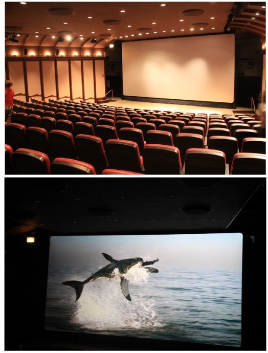水族馆有个内容一定要去看的,4D电影。这种由三维立体电影和周围的环境模拟组成的四维空间,是在3D立体电影的基础上加上环境特效、模拟仿真组成的新型影视,临场感的效果相当强。跟随着电影内容的变化,可实时感受到风暴、雷电、下雨、撞击、喷洒水雾等身边所发生与立体影象对应的事件,每个座椅是具有喷水、喷气、振动等功能。看到刺激处时,全场都大叫起来,秋生背后还被用力一击,还以为是后面一位女同胞被吓的抬起脚踢到了我,看完后才发现错怪了人家,其实是一种气动效果吧,猛击了我一下。