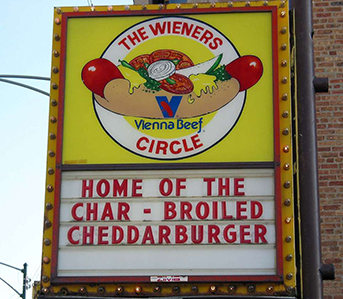 Wiener circle:这里是吃夜宵的好地方,店里面的氛围非常随意,它的招牌菜是热狗和干酪炸薯条。菜肴的价格是2美元-4美元。