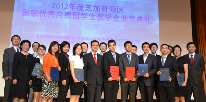 芝加哥侨学网报道】2012年中国国家优秀自费留学生奖学金颁奖典礼5月17日在西北大学隆重举行,本届评奖共有美中地区13所高校的22名中国留学生获“优秀奖”,芝加哥大学宋春啸、伊州大学香槟城分校(UIUC)熊枫,以杰出科研成就获得“特别优秀奖”。UIUC,西北大学,是本次评奖中获奖学生最多的高校。