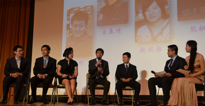 在隆重颁奖典礼之后,西北大学孙昕、芝加哥大学宋春啸、印第安那大学布鲁明顿分校撒妮雅、伊州大学香槟分校熊枫、圣路易大学杨兴这五位获奖者,还上台参加小组讨论,就当初为何选择留学美国、毕业后的打算、留学生活等话题进行讨论。