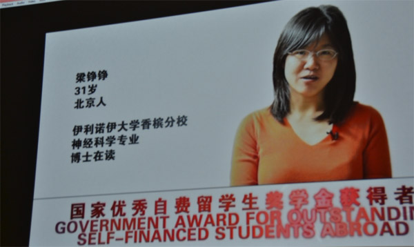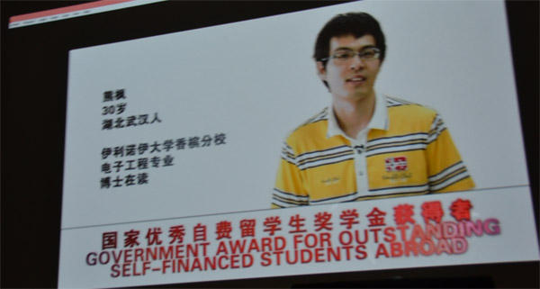 UIUC留学生熊枫发言。本届评奖,有五名来自UIUC的留学生获奖