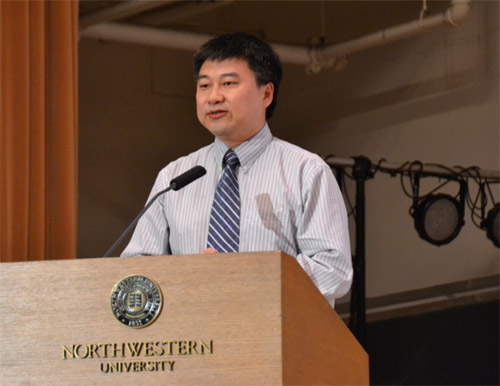 赵卫平总领事向24名获奖留学生表示祝贺,指出他们是广大中国留学生的优秀代表,更是芝加哥领区全体中国留学生的骄傲。赵总领事还贴心提醒广大留学生们出门在外,在努力学习之外,一定要注意资深安全及健康。西北副校长瓦许、教授马金(Chad A. Mirkin)及华裔教授黄永刚、孙诚等人,都在典礼中,肯定中国留学生的杰出表现。