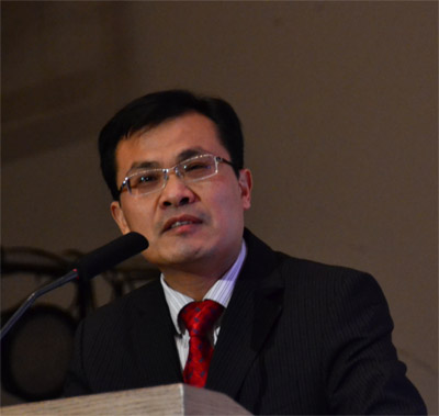 西北大学华裔教授孙诚发言。本届奖学金,有五名西北大学中国留学生获奖