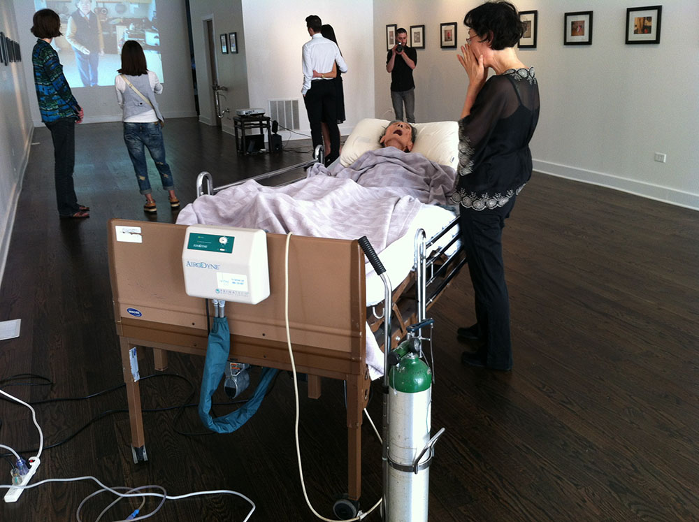2013年6月15日5时,在芝加哥亚洲艺术研究所举办了一次特别的展览。亚洲艺术研究所的创办者的岳母现在因患老年痴呆症及其他并发症,已经不能进食。在这样人生最后的时刻,她的妻子花花为了给母亲的一生以回顾,并借此表达作为女儿对母亲的爱,以母亲的一生为背景,展出了她的照片,和视频资料,并在展厅摆放一张病床请自己的母亲躺在病床上,享受一生的回顾,和子女友人的爱。