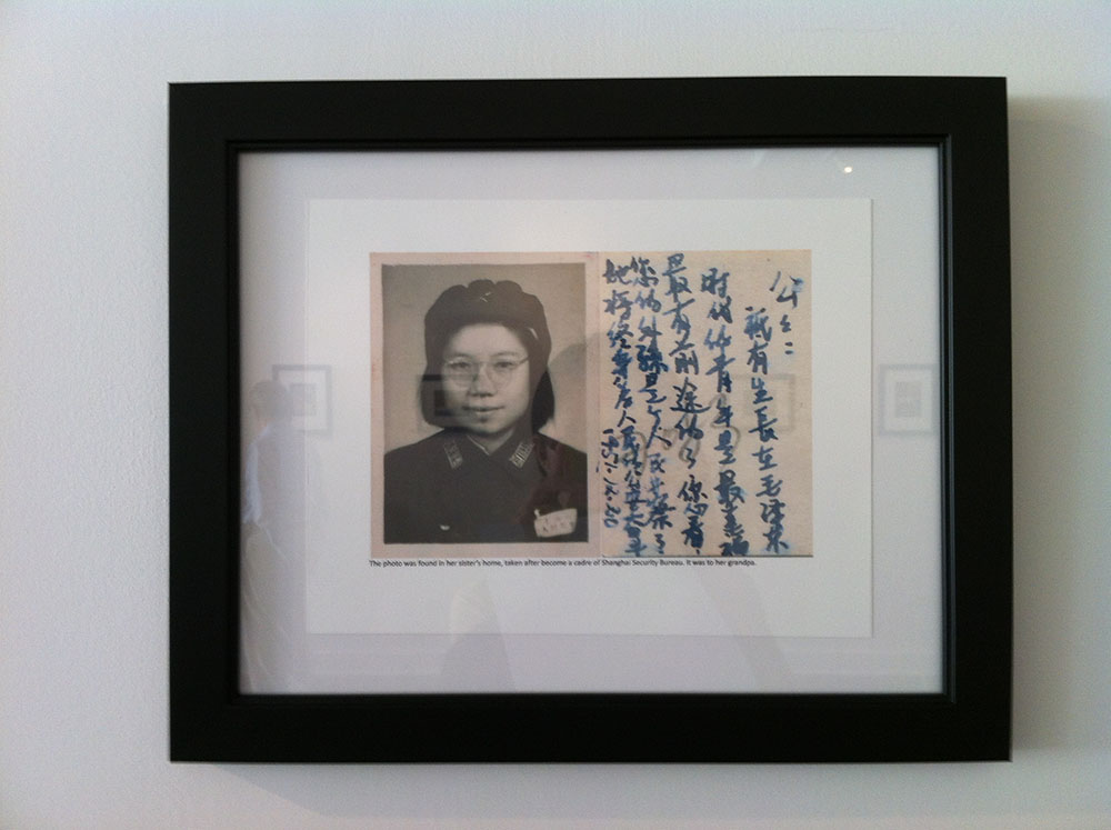 展览中,一面墙上挂满了不同年代,花花的母亲所留下的照片。这些照片和挂在旁边的生平简介介绍了花花的母亲精彩传奇的一生,也让所有观者看到了女儿对母亲的用心和爱。