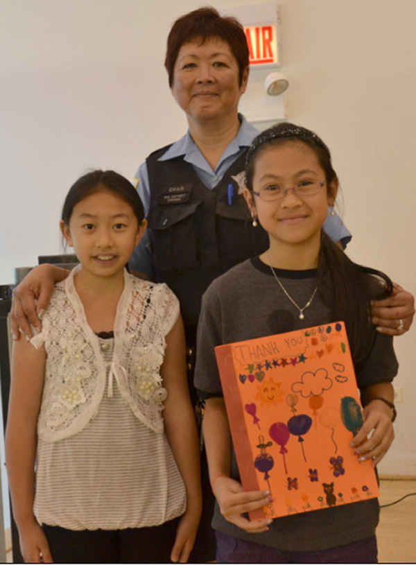 华咨处儿童发展中心的小朋友,则特别制作一张充满童趣的贺卡,感谢陈警官多年来为华裔社区的服务。华咨处青少年计划负责人邝杰棠表示,陈警官对华裔社区青少年的健康成长十分关注,经常参加教育孩子们远离帮派、走上正路的社区教育活动,在陈警官即将退休之际,他代表华裔青少年向陈警官的杰出服务表示感谢。