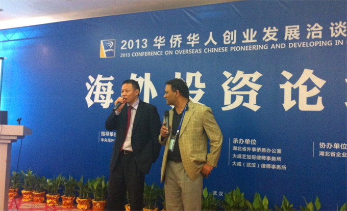 第十三届“2013华侨华人创业发展洽谈会”(华创会)日前在湖北省武汉市圆满落幕。美中湖北同乡会会长、大成律师事务所芝加哥分所主任黄正东律师,率领芝加哥地区实业界、教学及高新科领域的科研人士30多人代表团与会,并主持本届华创会“海外投资论坛”,为中国投资者介绍海外投资环境。