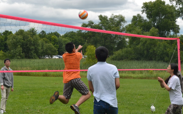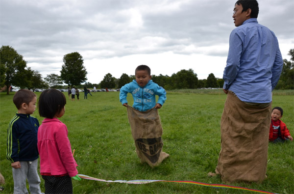 以“强健体魄,快乐家园”为主题的本届野餐烧烤联谊,推出众多体育竞技与家庭趣味活动。排球赛这个广受年轻人士喜爱的运动,从聚会开始到结束,现场搭建的草坪排球场上一直都有临时组建的球队在拼杀。主办方推出的跳绳比赛,谁在一分钟内跳的次数最多,谁就能赢得抽奖券及$25商家礼券,这项运动吸引众多人士排队参与。让人忍俊不禁的“袋鼠跳”比赛,要求参与者套麻袋学袋鼠跳跃,更是吸引众多家长与小朋友的参与。