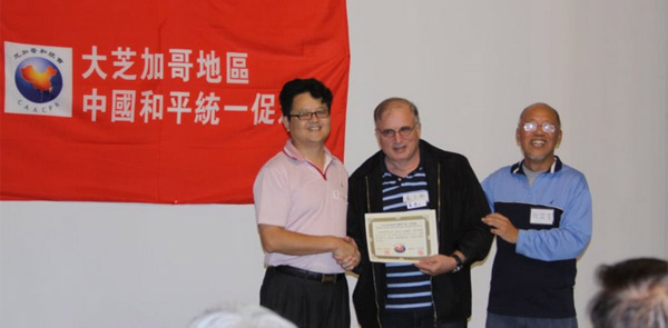 李红卫感谢王永副总领事和张庆新领事、各位侨领和朋友们的支持和参与,感谢和统会前辈们为和平统一事业做出的巨大贡献,将与新的团队一起,在9月7日将在IIT举办纪念“汪辜会谈”二十周年的座谈会,加强与芝加哥及全美华人华侨,华人社团和美国主流各界的交流与互动,大力宣传“一个中国”的原则,坚决反对台湾独立,树立中国和平统一的理念。