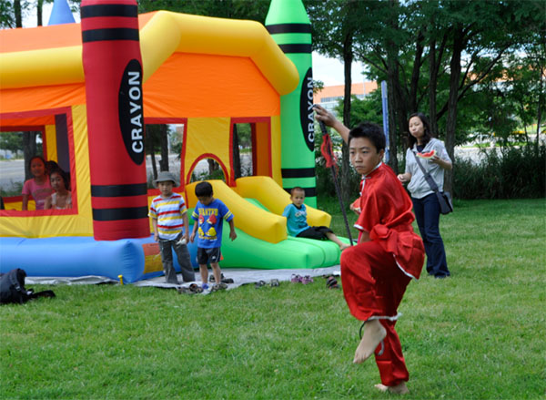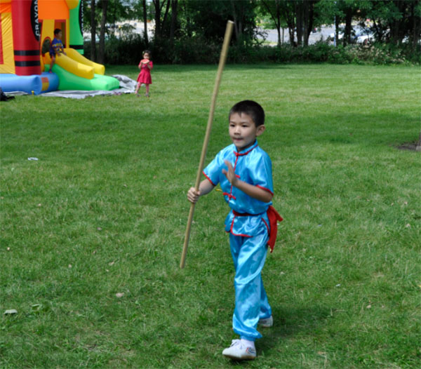 一顿饱餐之后,联谊会迎来了第一位表演嘉宾-----飞鹰功夫学院,飞鹰功夫学院的创立人宋凯飞师父是芝加哥地区唯一一个具有由芝加哥军事艺术学院(Academy of Chinese Martial Arts)授予三项荣誉头衔的功夫大师,当天带领着未来的功夫传人为各位湖南同乡展示了精彩的武术表演。精彩的武术表演引来了人群里的阵阵欢呼叫好,大家都被飞鹰功夫学院的精湛表演所折服。功夫表演之后,湖南老乡也忍不住放歌一曲,歌颂母亲,大家都深感触动,忍不住轻声吟唱。