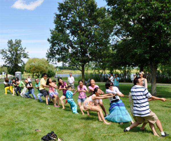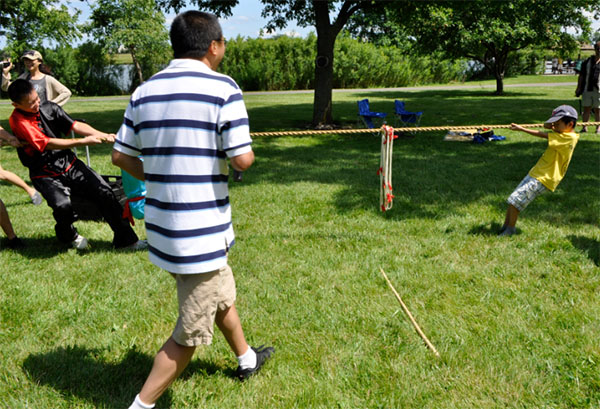 观赏完了精彩的表演,就轮到各位同乡激烈精彩的拔河比赛时间了!拔河比赛由于简单易懂,一向都是参与度很高的体育活动。果然主办方刚刚宣布了比赛开始,男女老少纷纷到达比赛现场,跃跃欲试。裁判不得不多次打断比赛来维持比赛的公平公正,拔河比赛进行了一场一场又一场,各位同乡都是意犹未尽。