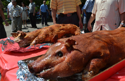 与会嘉宾们,两头烤乳猪,由皇上皇烧腊、大可以烧腊赞助