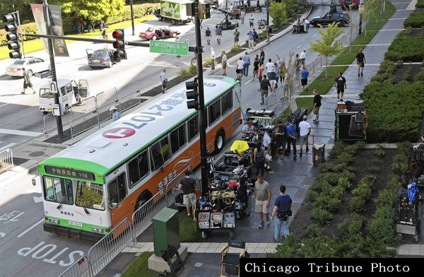 芝加哥侨学网编译】《变形金刚4》电影拍摄工作,目前正在芝加哥市举行。剧组将芝加哥麦科米克会展中心(McCormick Place)广场变成香港闹市区,并招募三四百亚裔群众演员,拍摄香港遭外星人入侵的电影场景。本周三,剧组将在芝加哥北城区(Uptown)取景拍摄。北城区的拍摄地点将包括Uptown Theatre, Green Mill ,这两处地方还进行空中拍摄。芝加哥的北城区场景,将在电影中变成德州的一座老城区。本周末期间,剧组将重新回到蓝盾保险公司大楼(Blue Cross Blue Shield Tower)进行拍摄。