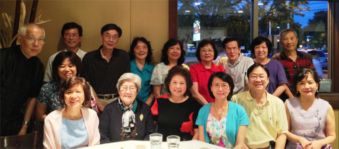 芝加哥華文寫作協會聚餐出席部分會員合影。前排右三為前任會長黃景綠,右二為新會長谷文瑞