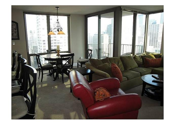 downtown river north 两室两卫出租,31层景观房,有gym和24小时door man,是逛街,吃饭和泡吧最便利的位置,交通方便, 毗邻loop 各大学。主卧带独立卫生间和walk in closet, 租1500,second bedroom 1300,东南朝