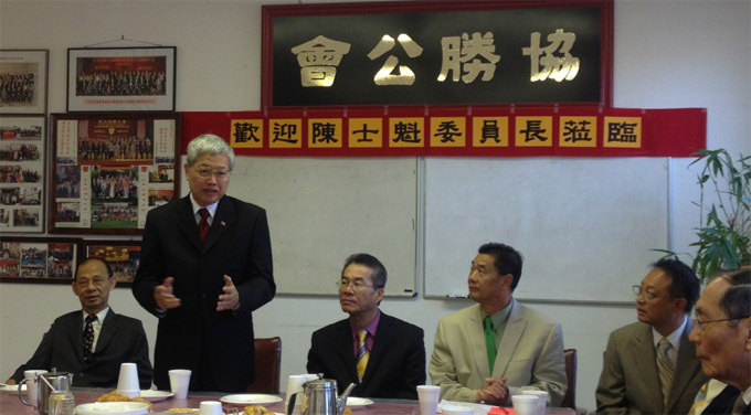 在陈委员长拜会侨社过程中,协胜、洪门、安良工商会的老侨领们,均表达侨界希望两岸和平发展,早日实现和平统一的心愿。比如协胜公会主席蔡锡峰表示“期望两岸早日统一”。