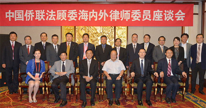 中国侨联主席林军(前排左三)会见中国侨联法顾委海外律师团一行14人,后排左七为王志东律师